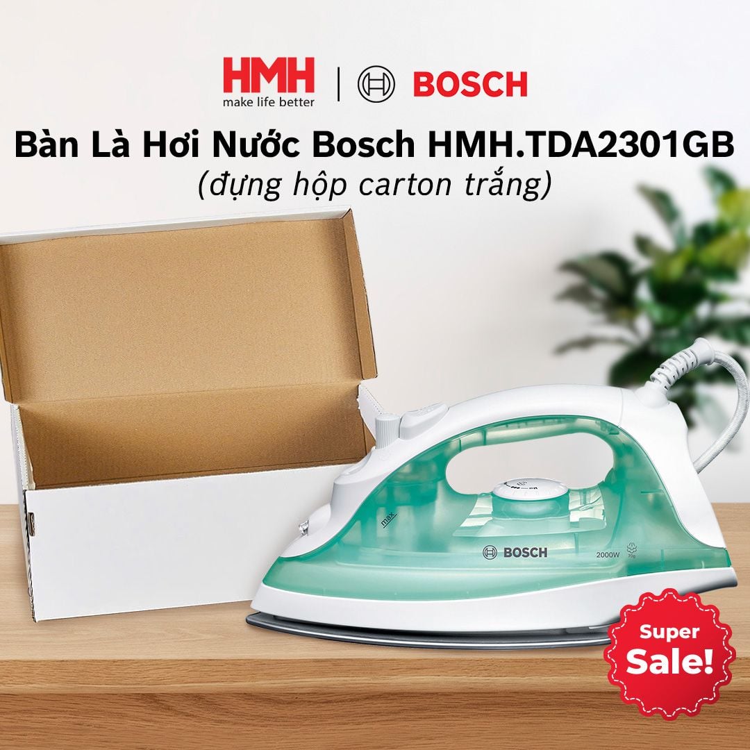Bàn là hơi nước Bosch HMH.TDA2301GB là dòng sản phẩm phổ thông được ưa chuộng nhờ sự cân bằng hoàn hảo giữa hiệu năng và chi phí. Với công suất 2000W và thiết kế mặt đế Inox bền bỉ, sản phẩm đáp ứng trọn vẹn nhu cầu là ủi hàng ngày của gia đình. Kích thước nhỏ gọn cùng trọng lượng nhẹ giúp người dùng thao tác linh hoạt, không gây mỏi tay ngay cả khi phải ủi số lượng quần áo lớn.