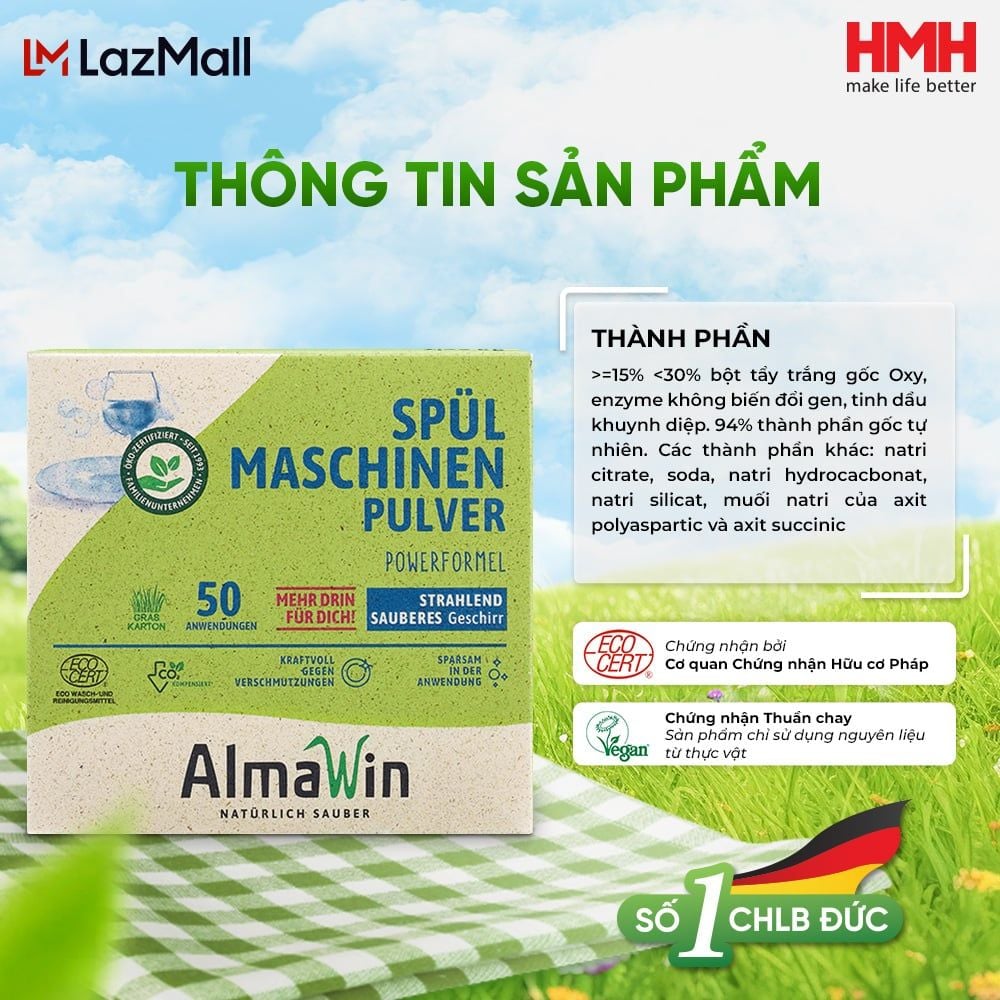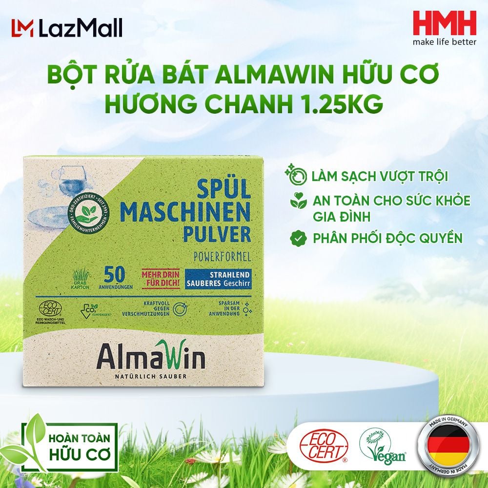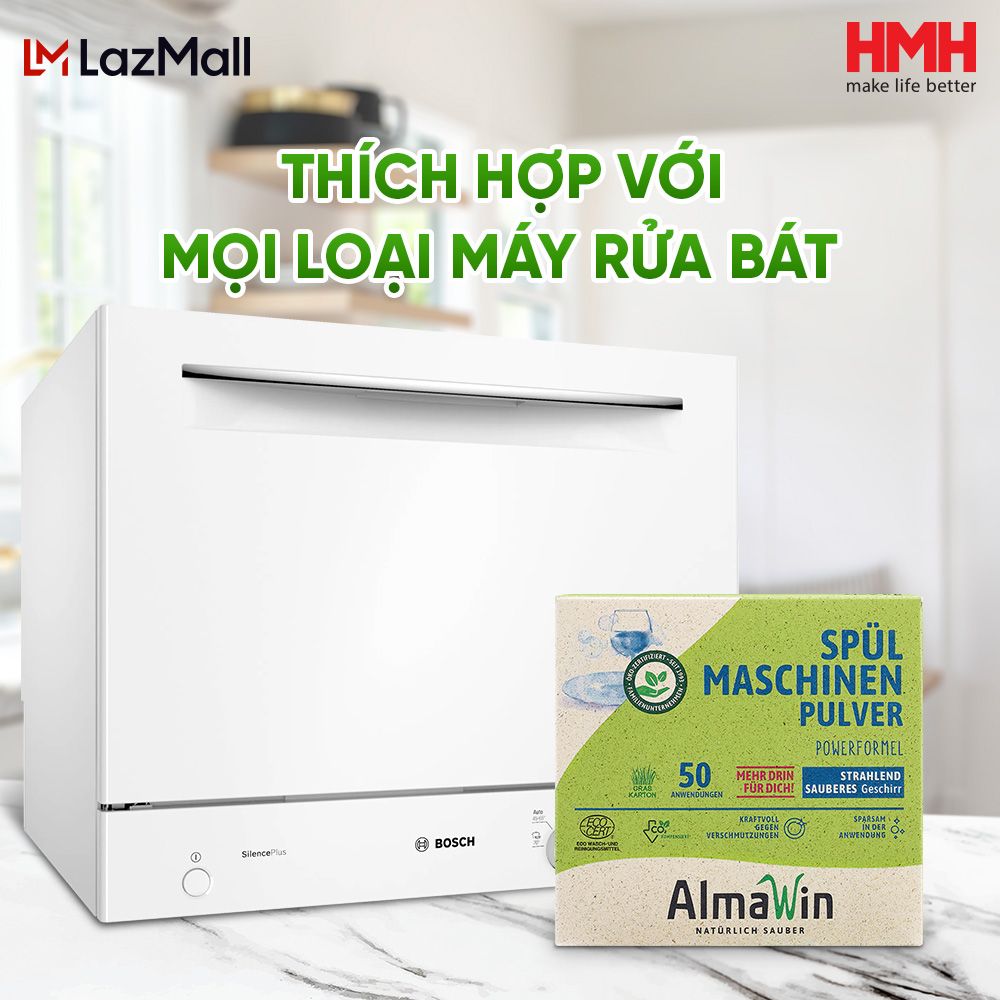 Công Dụng: Dùng với tất cả các loại Máy Rửa Bát. Để có kết quả tốt hơn, nên dùng kèm với Nước Làm Bóng Almawin và Muối Rửa Bát AlmawinĐóng gói: 1.25Kg
