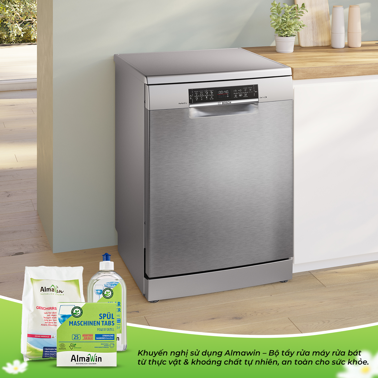 Khoác lên mình tông màu xám bạc thời thượng cùng chất liệu thép không gỉ cao cấp, Bosch SMS6ZCI85M không chỉ bền bỉ mà còn góp phần tôn lên vẻ đẹp hiện đại cho không gian bếp. Với khả năng rửa lên đến 14 bộ đồ ăn châu Âu, tương đương 3-4 bữa ăn của gia đình Việt, máy đáp ứng tốt nhu cầu của các gia đình đông thành viên hoặc những dịp tụ họp bạn bè.