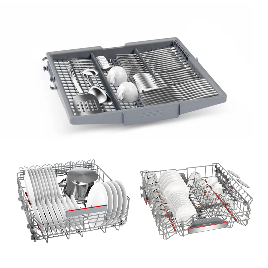 2. Dung tích lớn với hệ thống giàn rửa Max Flex Máy có khả năng rửa 14 bộ bát đĩa châu Âu trong một lần hoạt động, phù hợp cho gia đình đông người (4-6 thành viên). Hệ thống giàn rửa Max Flex linh hoạt giúp bạn dễ dàng sắp xếp các vật dụng kích thước lớn. Đặc biệt, khay VarioDrawer (giàn rửa thứ 3) được thiết kế riêng cho thìa, dĩa, dao kéo hoặc tách cà phê nhỏ, giúp tối ưu hóa không gian của các giàn rửa bên dưới.