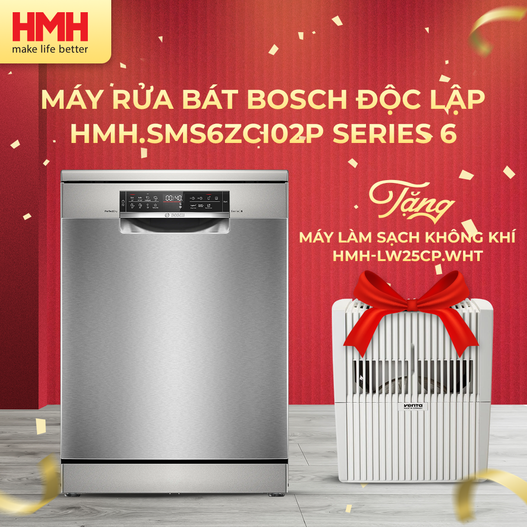 Máy Rửa Bát Độc Lập Bosch SMS6ZCI02P - Series 6 - Sấy Zeolith - Home Connect