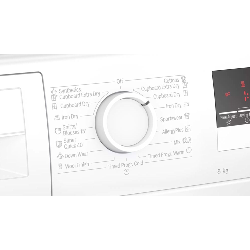 | Chương trình sấy: | Allergy Plus / Hygiene, downs clothes, Mixture, Shirts 15, Sportswear, Super 40, Time program cold, Time program warm, Woollens finish |