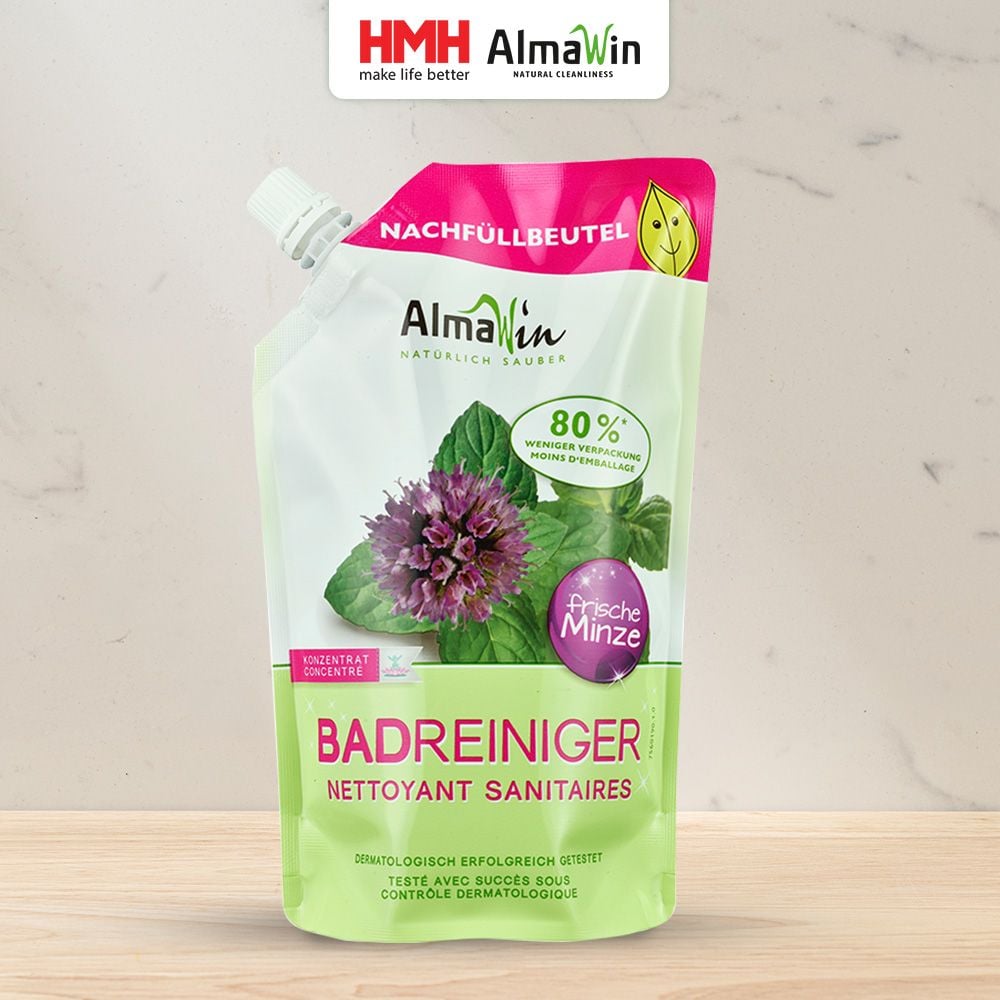 Nước tẩy rửa bề mặt nhà vệ sinh Almawin Hữu Cơ Hương Bạc Hà 500ml HMH.8032499, loại túi châm lại